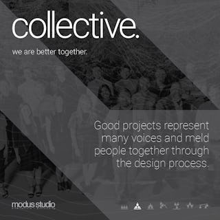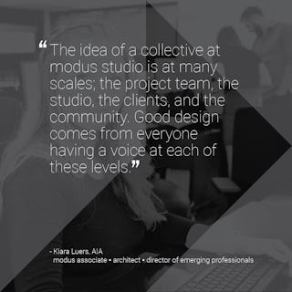 The idea of a collective at modus studio is at many scales; the project team, the studio, the clients, and the community. Good design comes from everyone having a voice at each of these levels. It is our job, through the design process, to mold it all together and come out with a project where the input of an entire team is represented.