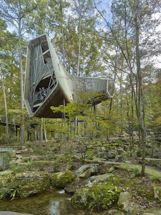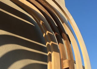 A notable example of this process was during the design of The Evans Tree House at Garvan Woodland Gardens. The semi-transparent form of the treehouse was created using 113 unique ribs shaped into an evocative form dynamically shrouding multiple levels of spaces. In order to test various wood species and types of joinery for these ribs, our team of artists and craftsmen at modus shop worked in conjunction with wood manufacturers and our architectural design team to create full-scale mockups. We temporarily installed these mockups on the facade of our own building, testing their strength, durability, weathering, and aesthetics. We used a similar process on the design and fabrication of the venation screen. These methods are not isolated to projects with significant budgets and complex forms. We believe this is a critical approach to design work at all scales.