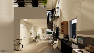 Architectural renderings provide us with the capability to test visual design attributes and to assist our clients in telling the story of their projects. These renderings of South Yard illustrate the project's first phase, a five-building multifamily complex that is currently under construction on South School Avenue in Fayetteville, Arkansas. South Yard Lofts will feature a range of residential unit options, from minimalistic studios to luxurious hosting lofts. Created to bring neighbors together, the remaining phases on the nine-acre site will create a basecamp for the community to explore and connect around restaurants, shops, offices, housing, and hospitality.