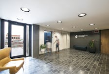 Originally built as a bank in 1965, all seven levels plus the basement (a total of 58,000 square feet) have now been renovated into class A office and retail space. The main entrance and lobby have been opened up to allow for more visibility and new display windows. A new entry portal topped with a fourth floor balcony hosts extensive views of the downtown square and surrounding mountains. Lobby renovations include marble elevator surrounds, new seating, and custom tenant signage. Office spaces range from 500 to 5,500 square feet. The basement level has also been extensively reworked to include shared locker rooms, showers, bike racks, an herb garden, and outdoor seating. Tenants are now located in the basement as well, including a yoga studio and a bourbon bar.