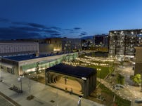 Block 7 is a downtown revitalization project for the city of Redding, California. The existing site was a two level parking structure for the now defunct shopping mall. The revitalization project removed the old parking deck and added a 5 story office building, a 5 level parking garage with brise soleil and solar panel array, 20 market rate housing units with retail space at street level (unbuilt future phase) and 78 units of net zero affordable housing divided across three buildings, all with retail at the street level. Whistlestop Park was also designed as part of this project and serves as a green space and gathering place for the community, something that did not exist in this cultural center for the city.