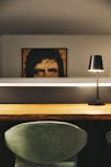Other custom fabricated elements include an outdoor community dining table, firepits, live-edge wood desks and shelves, indoor gas fireplace, and clubhouse reception desk. The matching wallpaper was hand made in Arkansas by the award-winning team at ASSEMBLAGE.