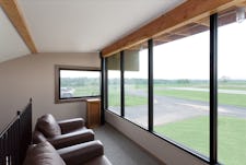 Simple materials of metal panel, glass, and cement fiberboard are carefully articulated as lightweight skins to capture form and flood space with natural light and view. The wedge form provides compression at the public entry at the north and release towards the runway to the south, welcoming planes as they land. From the sky, the building is a beacon, a parked artifact, and a form familiar to visiting pilots. The observation deck, or vulture’s row is a unique loft providing prime views to the approach end of the runway…a vantage from which pilots critique the skills of others as they make their landing on the windy hilltop.