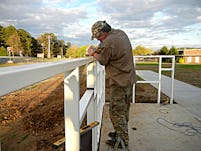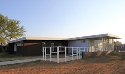 When modus studio designed the new Heber Springs Elementary classroom building to incorporate an outdoor art display wall, it was only fitting that modus shop do the actual fabrication and installation. The art wall is designed to allow students to pin-up their artworks within the confines of what essentially becomes an outdoor classroom area. The wall is constructed of a simple painted steel tube frame composed in an arrangement intended to be a visual continuation of the window frame pattern in the adjacent entrance. This continuity of material and color bridges the interior and exterior spaces together.