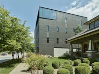 This new four story building is the modern stamp of prosperous longevity for a small local business as they have officially planted their roots. The building form separates, like the lens of a camera, to embody another aperture in the client’s tool belt as the building now becomes a reflection of their daily process. These two crisp brick masses are connected by an expansive glass volume that creates entries, street connections, balconies, and views of the historic downtown. Clean geometries along the facade reinforce the shutter-like qualities of the building while also expressing the structural elements as a reflection of the system that supports them.