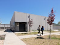 We're proud of our ongoing work with school districts across Arkansas, including several multipurpose FEMA safe rooms. This one at the Omaha School District in the small town of Omaha, Arkansas, was completed in 2021 and provides a safe area for the school and community during extreme wind events. It also serves as an indoor range for the archery teams. The building is tucked neatly into the existing campus, with a precast concrete structure, backlit steel canopy, and integrated signage.