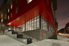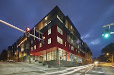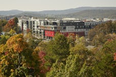 The Cardinal at West Center is a bold high density infill multifamily project focused on elevating community interaction and student living experiences by providing a sustainable, walkable, and modern healthy place. The energetic architecture hosts expansive balconies, active stairs and acute amenities to uplift the college experience. The typological model seeks to remove the casual car commute from the daily life of a resident by placing them adjacent to the University of Arkansas within a building that shifts drastically from the stylistic design norms—a strong shift from the predominantly suburban habits and experiences of most southern students.